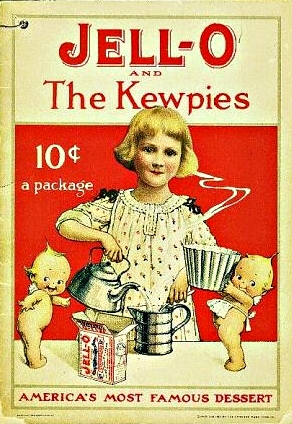 “Kewpie dolls” are thought of as prizes won at shooting galleries and pother carnival attractions. Back in 1908, Kewpies were cupids drawn by Rose O’Neill. They began appearing that year in Jell-O ads, and by the time the series ended in 1921, there had been 98 such ads.