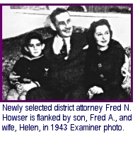 FRED N. HOWSER was appointed as the 31st district attorney of Los Angeles County after the Board of Supervisors settled on him during a closed-doors “emergency” session on Feb. 1, 1943. The following day, in a public session, the board unanimously confirmed its choice of Howser, a 38-year-old Republican assemblyman, to succeed John F. Dockweiler, who died three days earlier.