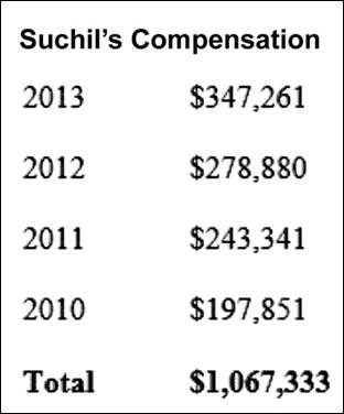 Highlighting the ensuing discussion was Michaels’ revelation that Suchil’s annual remuneration has swelled from $197,851 in 2010 to $374,261 in 2013. The 2013 figure includes benefits and a $20,000 bonus.