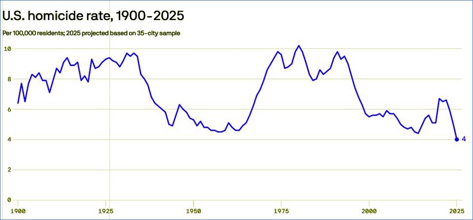 The rate of murders and other slayings in major cities across the nation has plummeted, WhiteHouse.gov has —providing a link to a Council on Criminal Justice report showing a 36% drop in homicides in the City of Los Angeles from 2019 to 2025—citing efforts by President Donald Trump as a major factor.